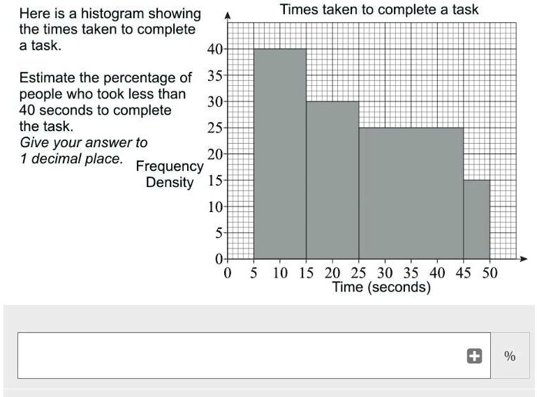 Solved Please Help Me Please Here Is A Histogram Showing The Times Taken To Complete A Task 40 Times Taken To Complete A Task Estimate The Percentage Of 35 People Who Took