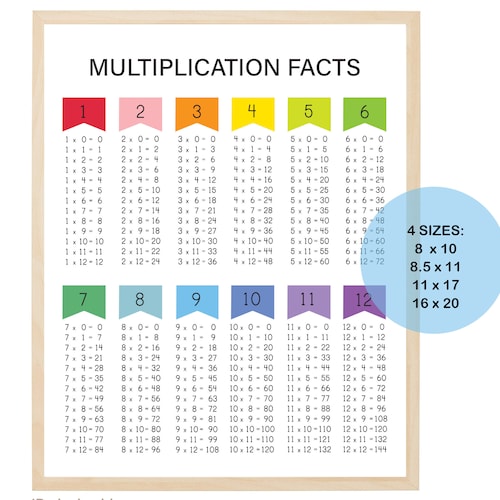 Multiplication Facts 0 12 Multiplication Chart Etsy