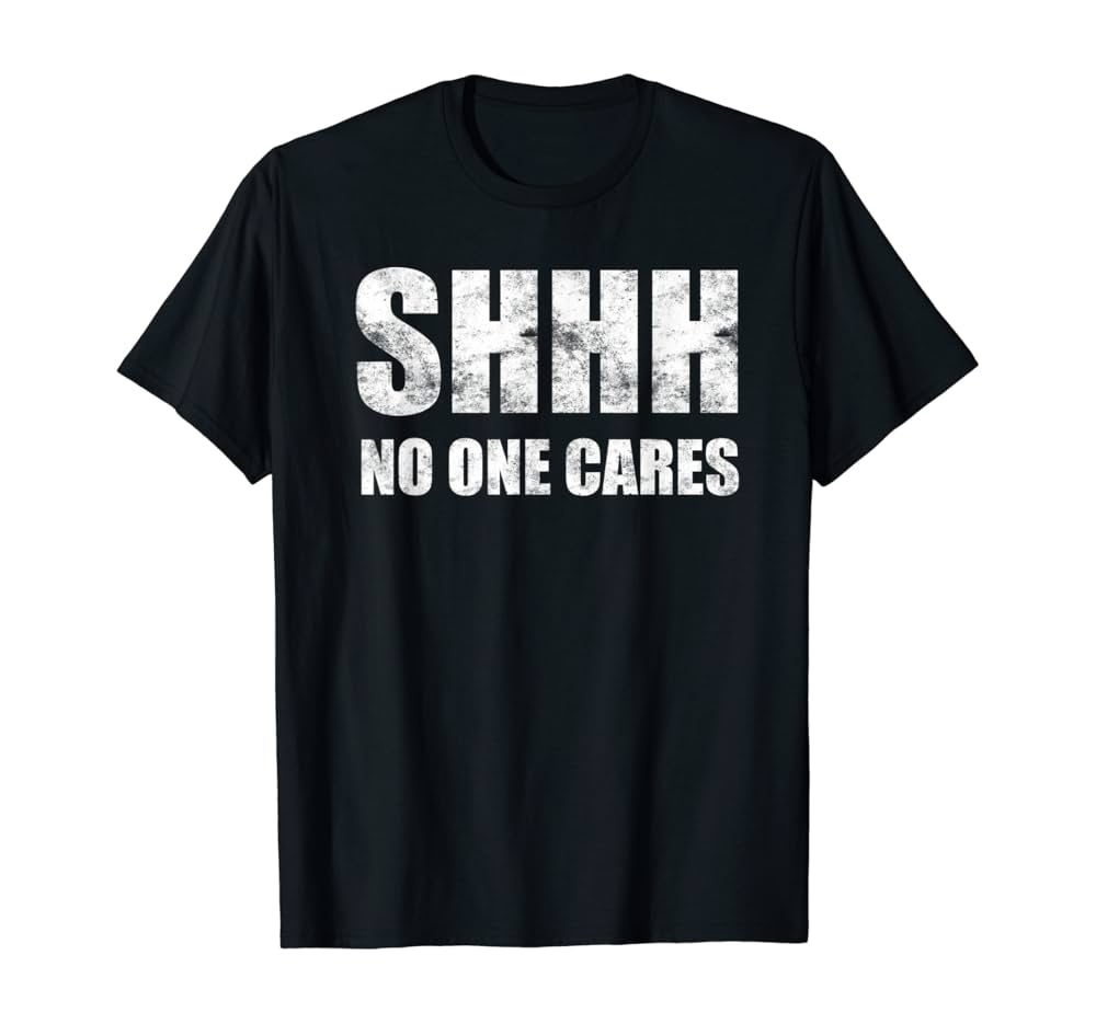 Amazon Com The Original Shhh No One Cares Tshirt Clothing Shoes Jewelry