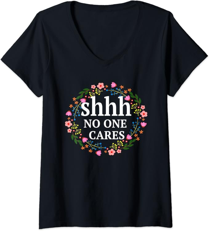 Damen Shhhh No One Cares Nobody Cares Sarkastisches Geschenk Fur Damen T Shirt Mit V Ausschnitt Amazon De Fashion
